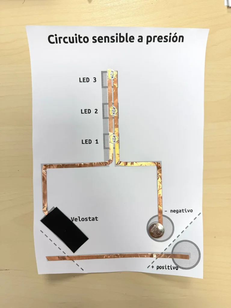 Con este tutorial tan sencillo, los estudiantes pueden diseñar tarjetas interactivas o proyectos de arte electrónico. Pero si queréis llevarlo un paso más allá y aprender sobre Velostat y los sensores de presión en un circuito, a continuación te explicamos cómo.